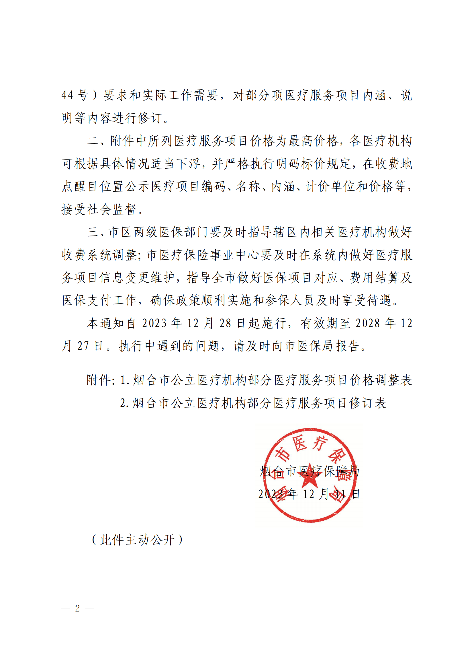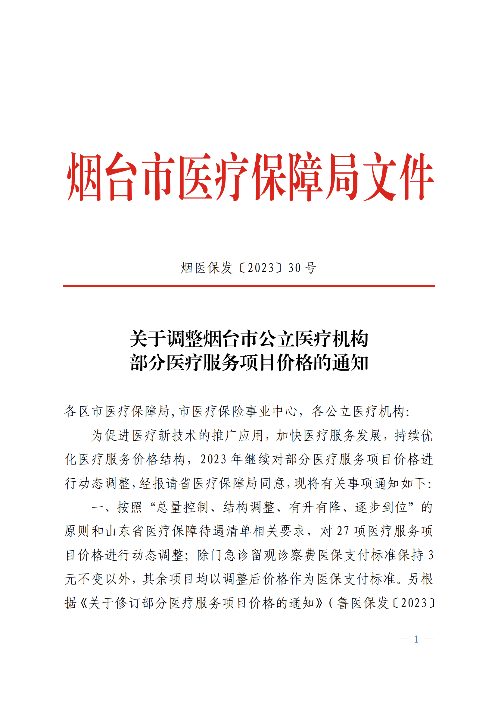 關(guān)于調(diào)整煙臺市公立醫(yī)療機構(gòu)部分醫(yī)療服務(wù)項目價格的通知